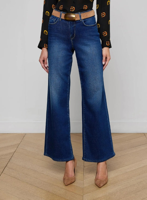 The ultimate sneaker length wide-leg jean. This L’AGENCE bestseller is back in a dark indigo wash with slight fading designed to contour the leg for a flattering, lengthening effect.