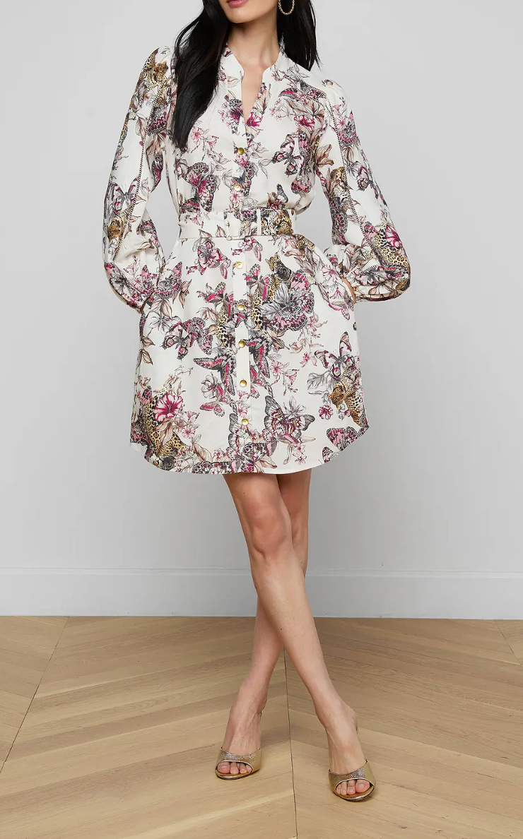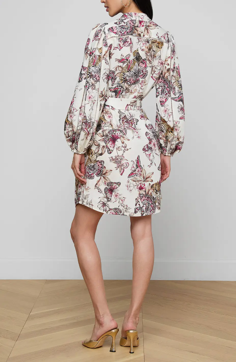 L'Agence Kiersten Dress - White Multi Large Butterfly Jungle