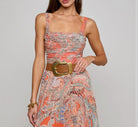 L'Agence Rasha Mesh Paisley Tank - Orange/Light Blue Traditional Paisley