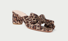 Pleated mid-heel sandal in leopard Italian shantung topped with our signature knotted bow. Features a padded footbed with gold stamped logo and an open toe. Slips on. 2-inch heel.