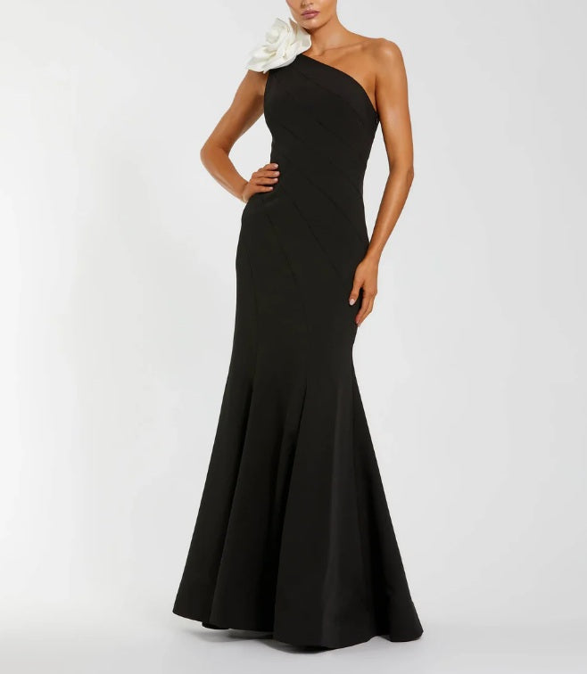 Mac Duggal One Shoulder Mermaid Gown With 3D Flower - Black/Ivory