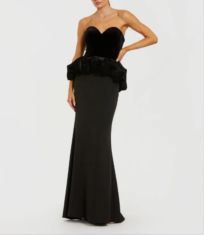 Mac Duggal Strapless Velvet Peplum Gown - Black