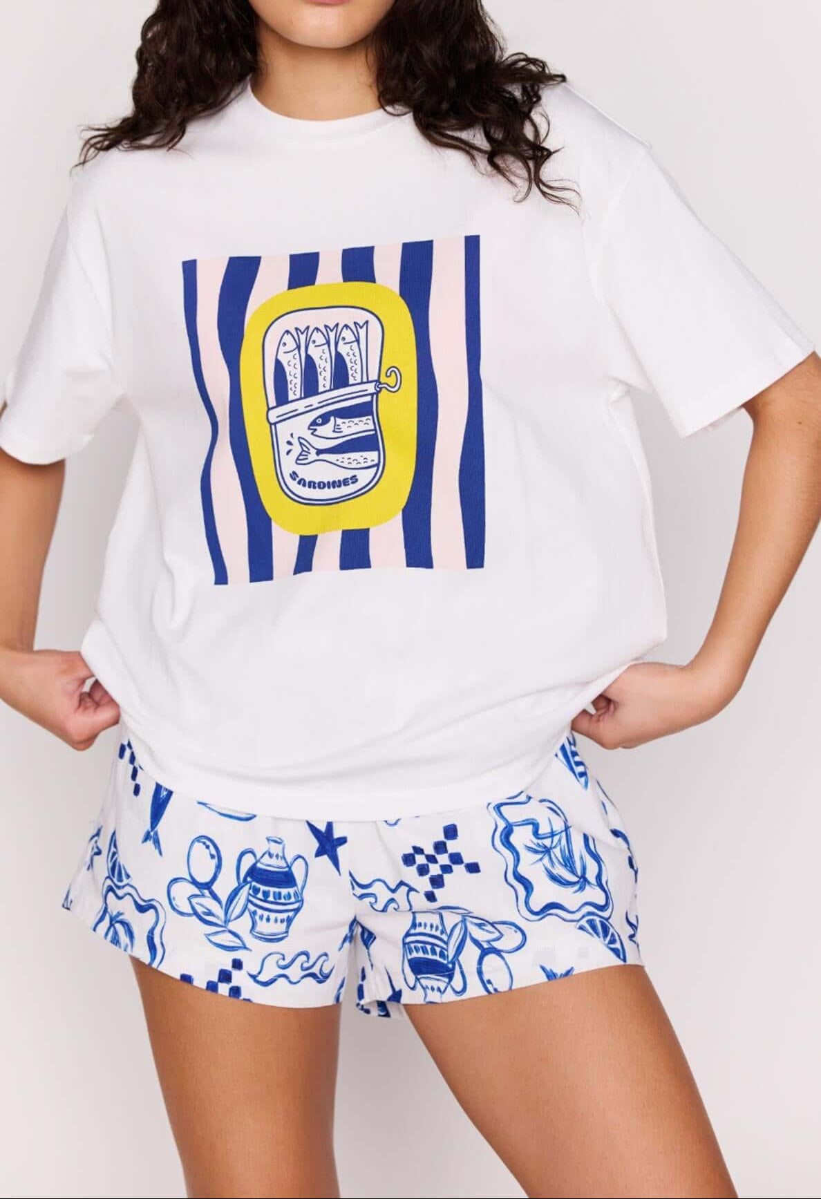 MinkPink Statement Relaxed Oversized Cotton Tee - Marina Printed Tee