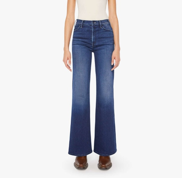 Team spirit. 70s-inspired wide leg jeans with a high rise, 33-inch inseam and a clean hem. Made from stretch denim, Homecoming High is a dark blue with subtle whiskering and fading at the knees.