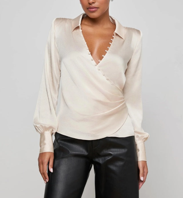 L'Agence Bernice Satin Wrap Blouse - Champagne