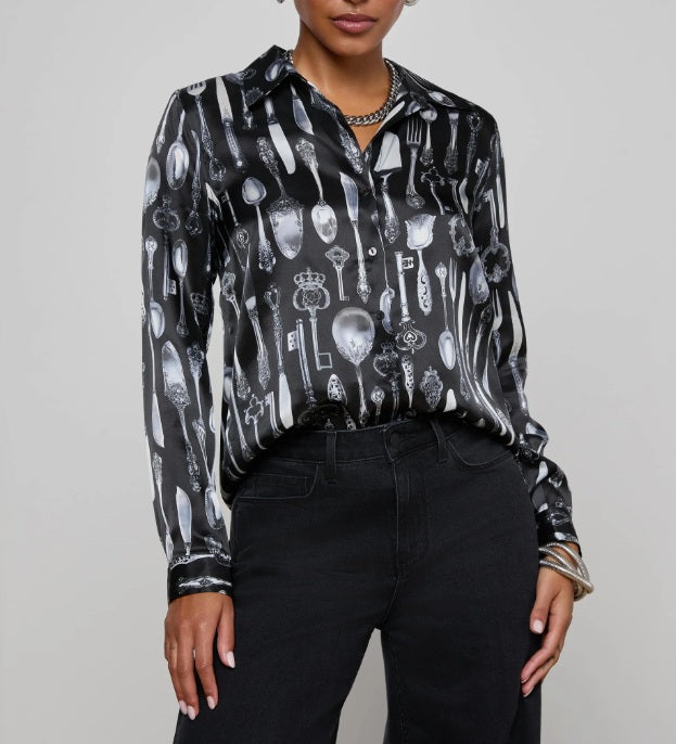 L'Agence Tyler Silk Blouse - Black Multi Silverware