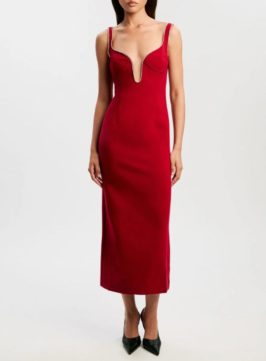 Bardot Brooklyn Diamonte Midi Dress - Burgundy