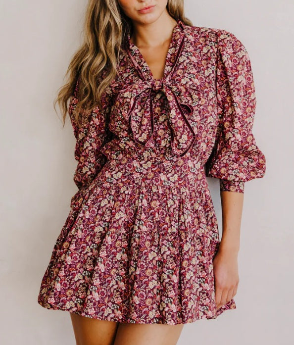 Love The Label Nelly Mini Dress - Pippa's Symphony Red Liberty Print