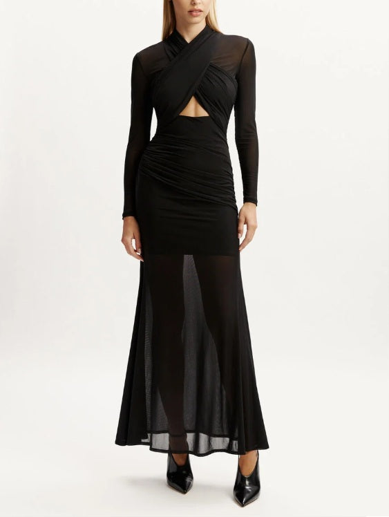 Bardot Veria Wrap Mesh Maxi Dress - Black