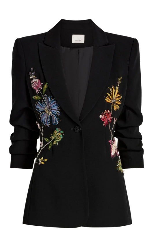 Cinq à Sept Floral Mixed Media Scrunched Cheyenne Blazer - Black/Multi
