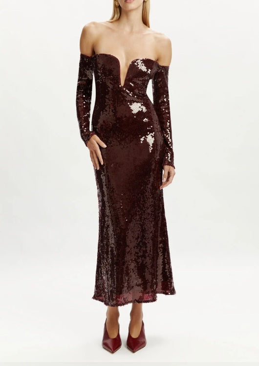 Bardot Lexter Long Sleeve Knit Dress - Chocolate