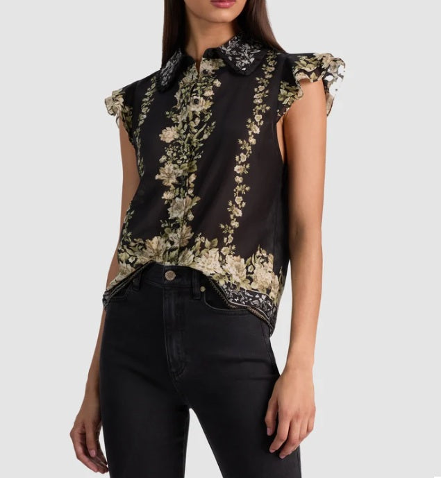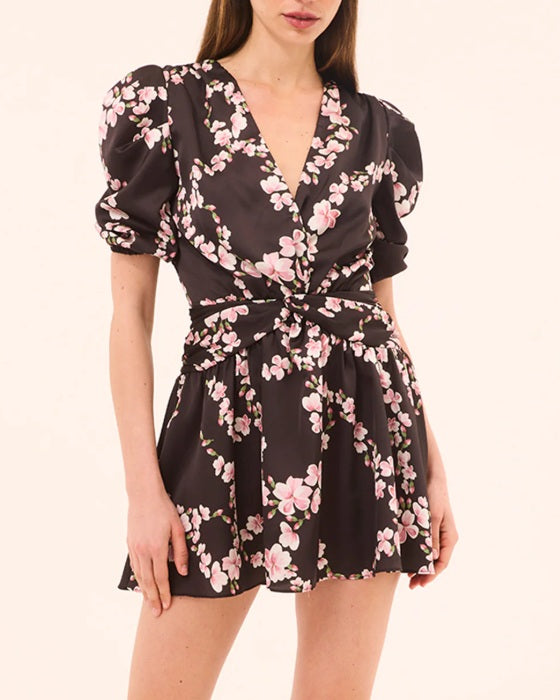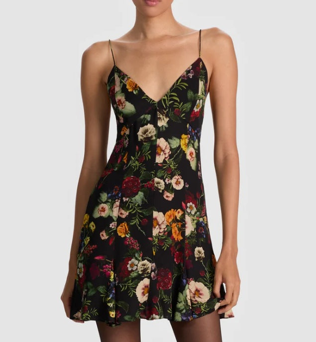 Alice + Olivia Julietta Mini Slip Dress - Magic Garden Black