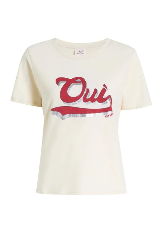 Cinq à Sept Vintage Oui Mon Amour Shrunken Tee - Gardenia Multi