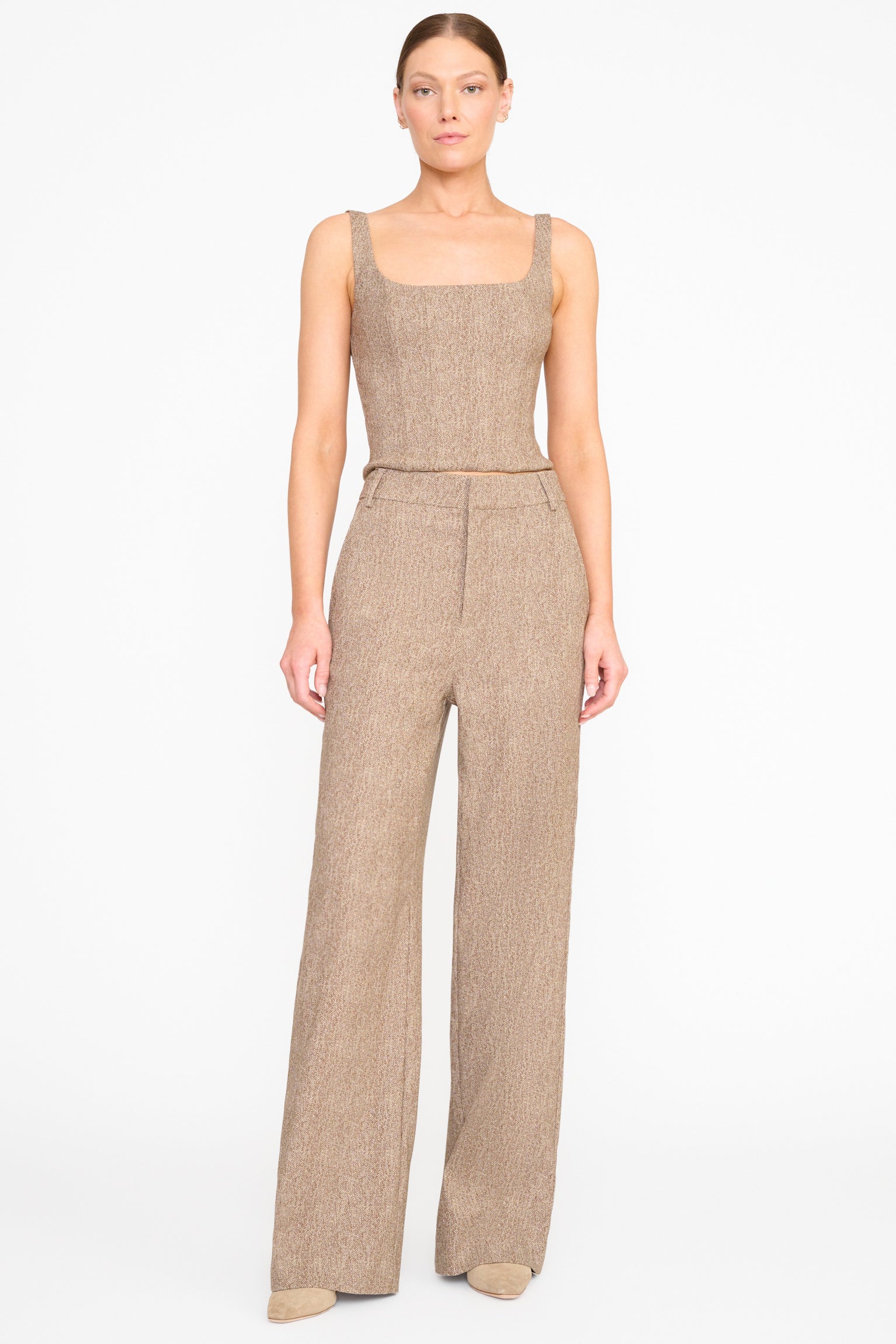 Staud Wells Top - Mocha Herringbone