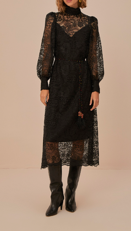Farm Rio Lace Black Midi Dress