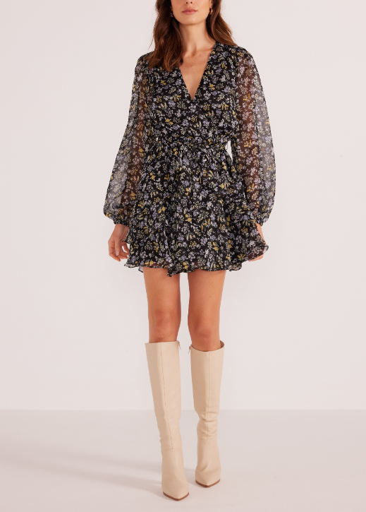 MinkPink Taylee Long Sleeve Mini Dress - Midnight Ditsy