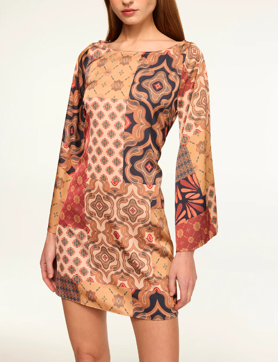 Misa Twiggy Dress - Surreal Patchwork Satin