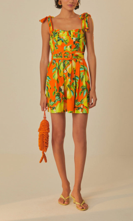 Farm Rio Orange Chic Pears Organic Cotton Mini Dress