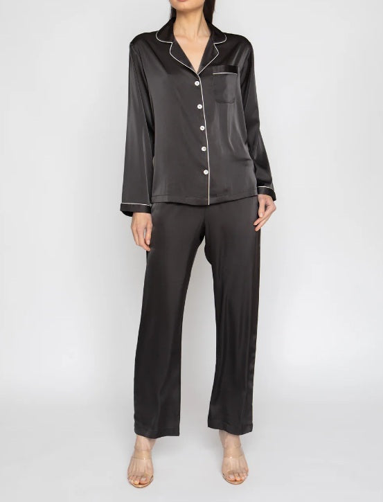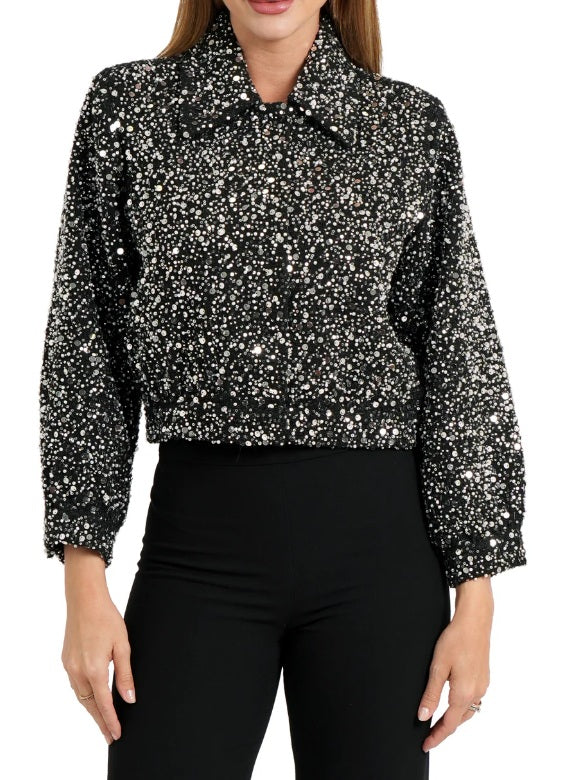 Liverpool Long Sleeve Collared Zip Front Knit Shirt - Black
