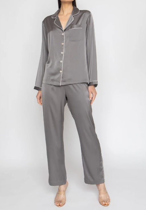 Liverpool Crew Neck Drop Shoulder Sweater - Light Grey Charcoal Stripe