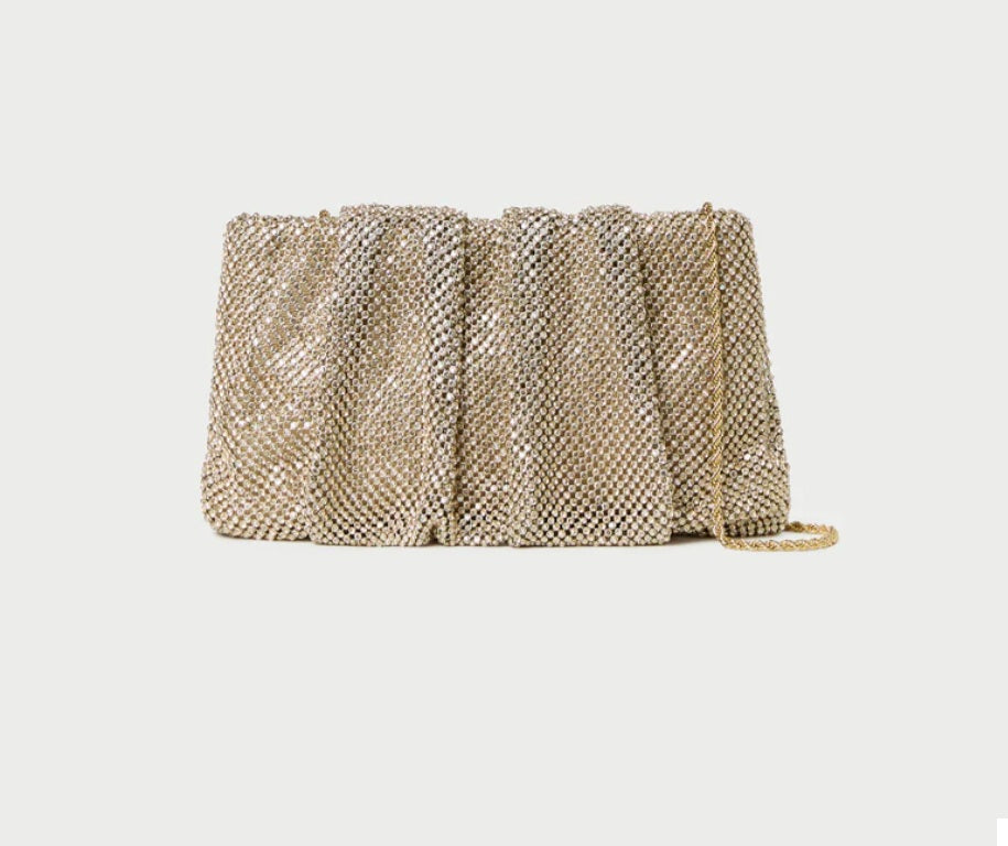 Loeffler Randall Serena Gathered Clutch - Shadow Gold Diamanté