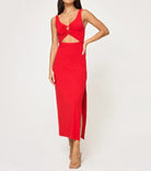 The Camille Dress is an essential part of any wardrobe. This midi dress features a flattering cut out at the front with a sexy leg slit at the side. Style with a pair of kitten heels for your next date night.