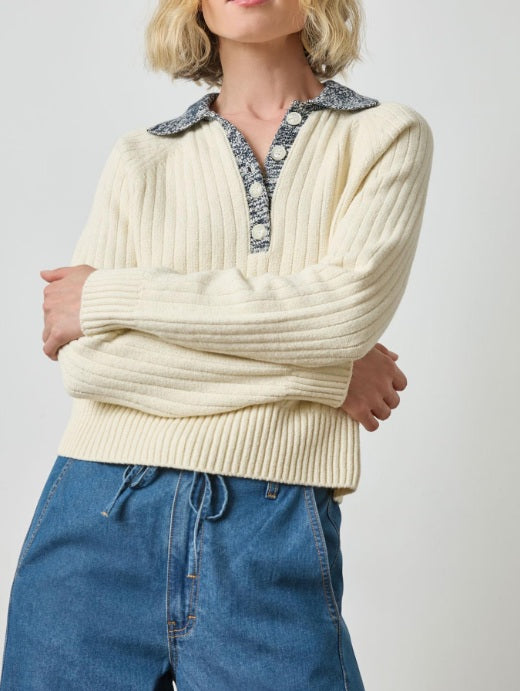 Knit in an eco-friendly cotton boucle with a touch of stretch, the Marled Henley Sweater offers comfort and ease. The ribbed body is complemented by a marled collar and placket for a unique contrast. With a slightly shorter length and ribbed hem, it pairs effortlessly with higher waisted bottoms or our straight leg drawcord pant..