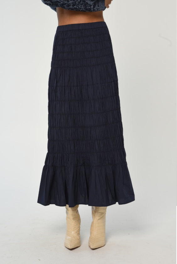The Kelly Skirt is a wardrobe staple! Designed with smocking throughout the body and a comfortable encased elastic waistband.