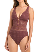 Bleu Rod Beattie Sunkissed Crochet Over-The-Shoulder One Piece - Coffee