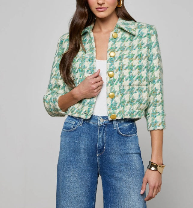 L'Agence Jia Houndstooth Tweed Jacket - Dusty Jade Multi
