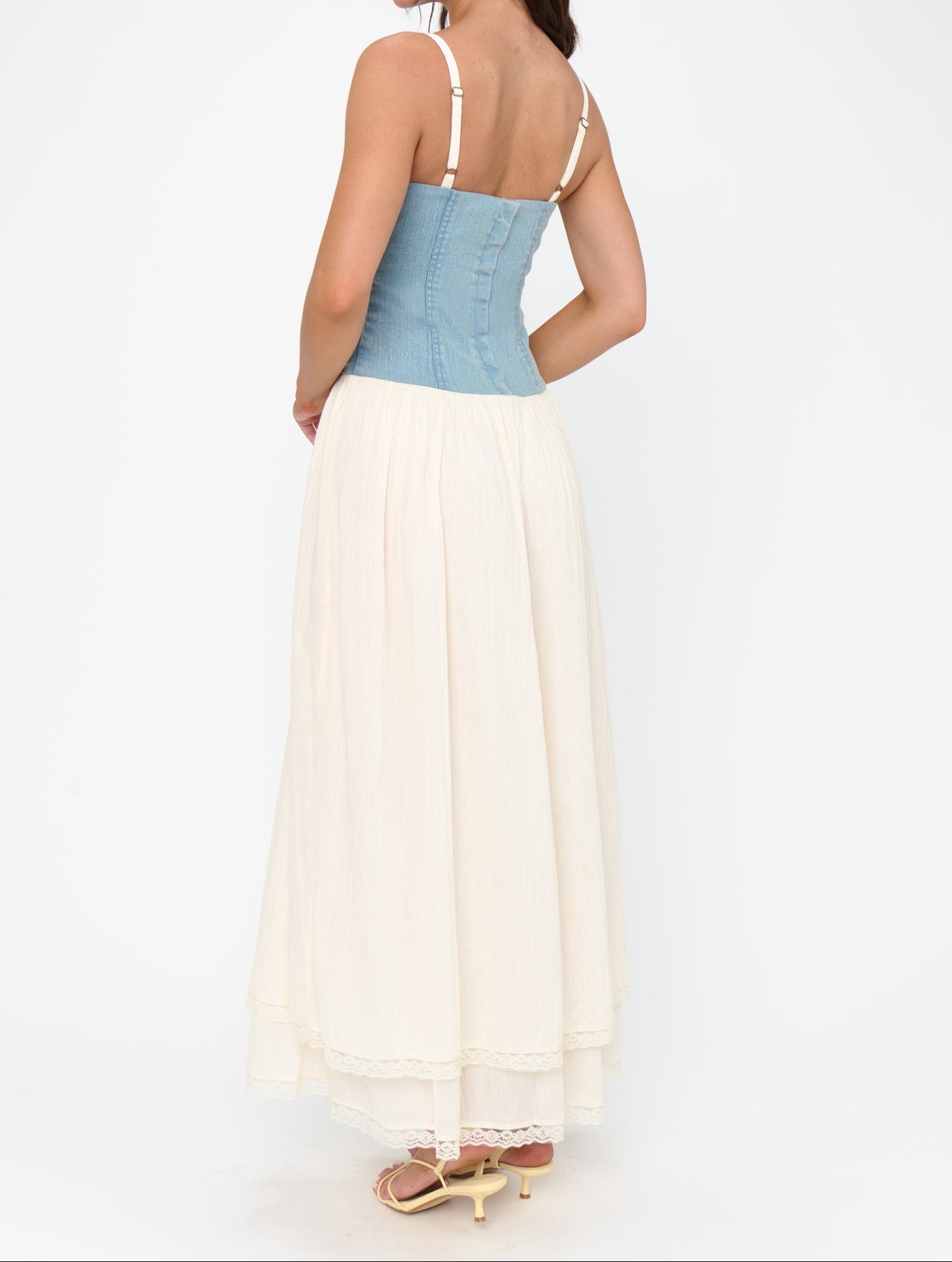 Show Me Your Mumu Tiffany Maxi Dress - Light Indigo with Cream Voile