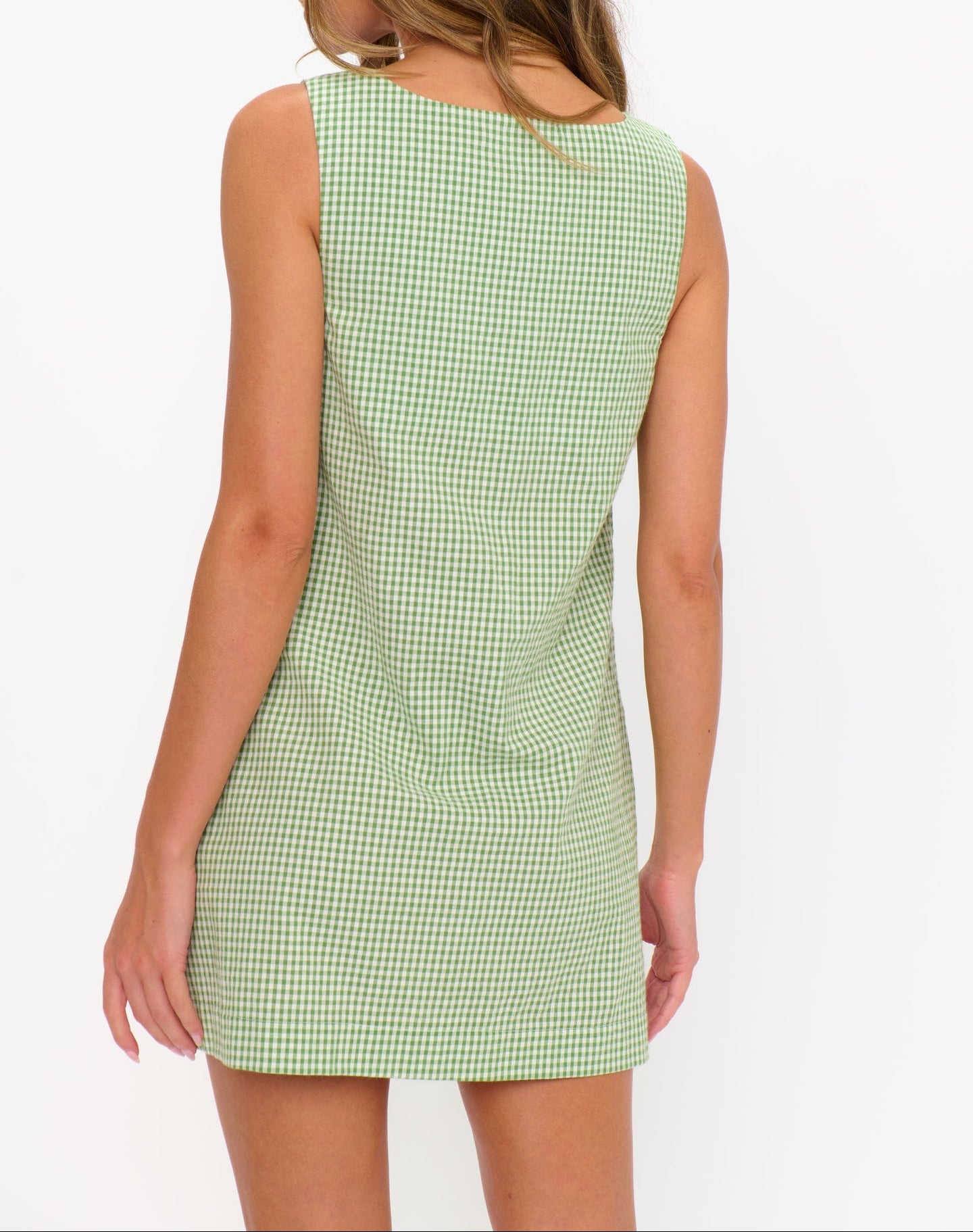 Sweet and timeless, this green gingham mini is full of countryside charm! Featuring a square neckline, front button accents, and a slightly boxy fit, it’s sure to earn its place as a spring staple.