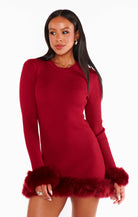 Show Me Your Mumu Fran Mini Dress - Cranberry Rib With Faux Fur