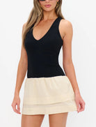 You’re going places in the Kenna Mini Dress! This mini pairs a curve hugging, second-skin–like bodice with an airy cotton skirt for a contrast moment that feels light and fun. Finished with a low-cut V neckline, she’s the perfect throw on style for anything fun in the sun.