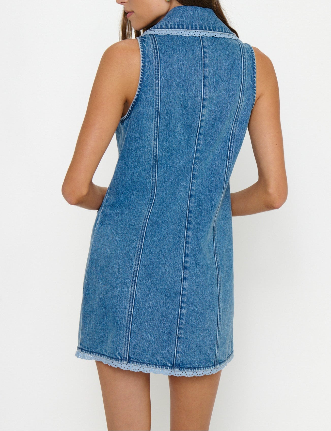 Add the Maddox Mini to your weekend wardrobe! With a vest-style top, front buttons, and sweet contrast lace detailing, she’s the perfect throw on piece that works from day to night.