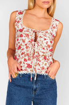 Effortlessly femme, this tank features a slim silhouette, delicate lace trim, and adjustable tie details. A waist-cinching belt at the back adds the perfect touch for a flattering fit.