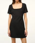 A short sleeve mini dress made from a flattering ponte fabric, the Stern features a square neckline and a-line skirt.