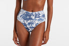 A classic bikini bottom, the Devon is high-waisted with moderate back coverage.