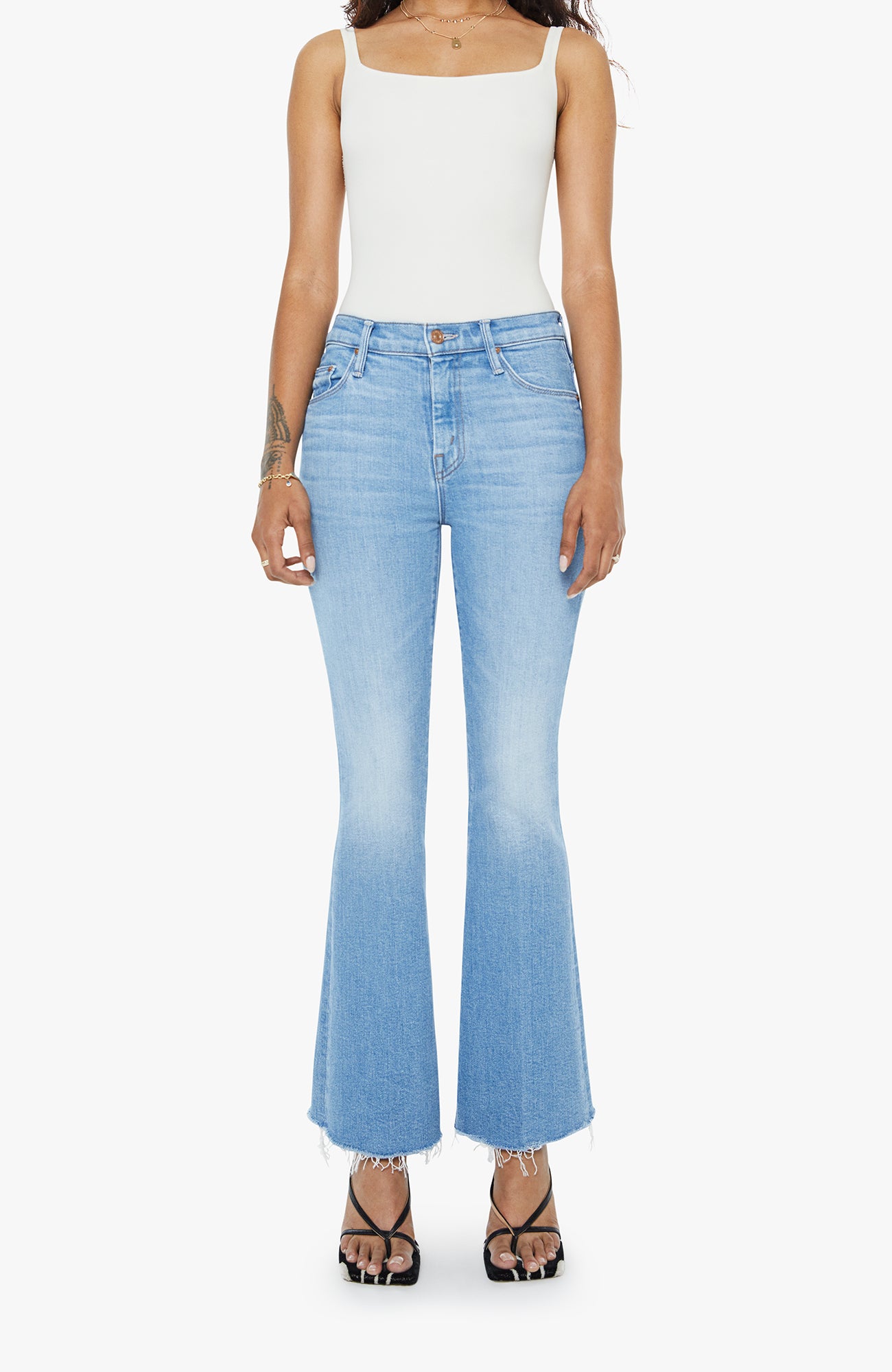 Mother The Tux Sidestepper Sneak Fray Jeans - Double Take