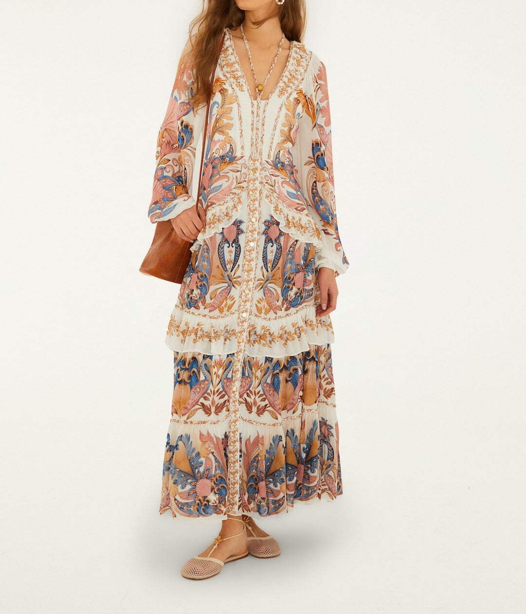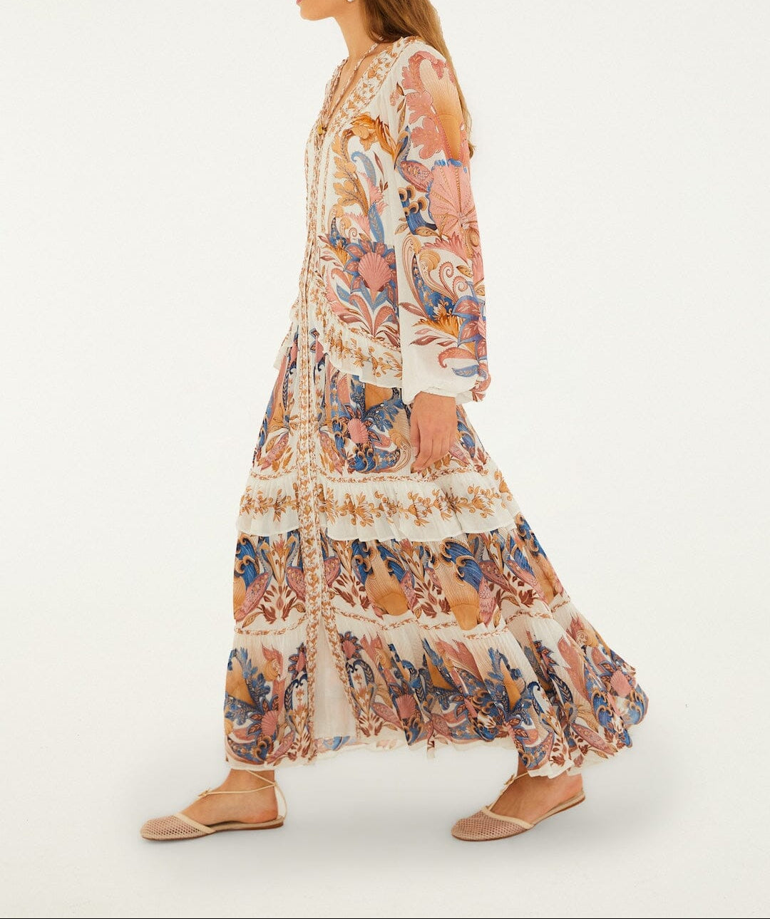 Farm Rio Off-White Sea Garden Ruffled Maxi Dress