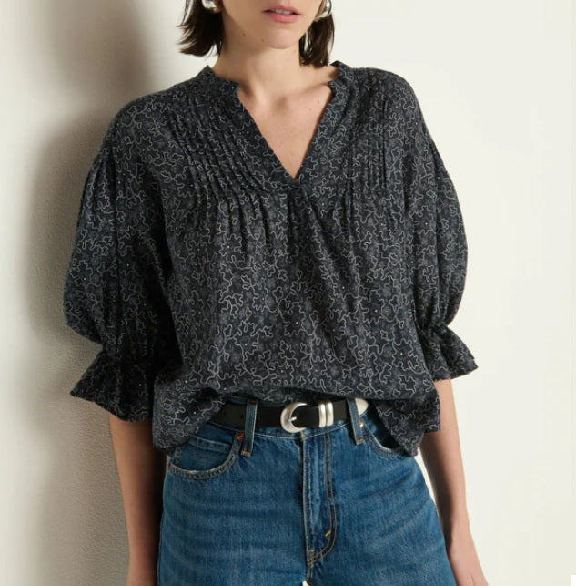 Breezy and beautifully undone, this romantic pintuck top has a boxy, slightly cropped fit and balloon sleeves for an effortlessly elevated look. This one comes in Santa Fe Floral.