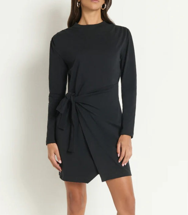 This 100% heavy slub cotton staple knows how to make an entrance. Featuring a classic crew neck (so yes, you can wear it to work) and a wrap tie to cinch and flatter the waist (so you can also wear it to drinks after). This one comes in Jet Black.